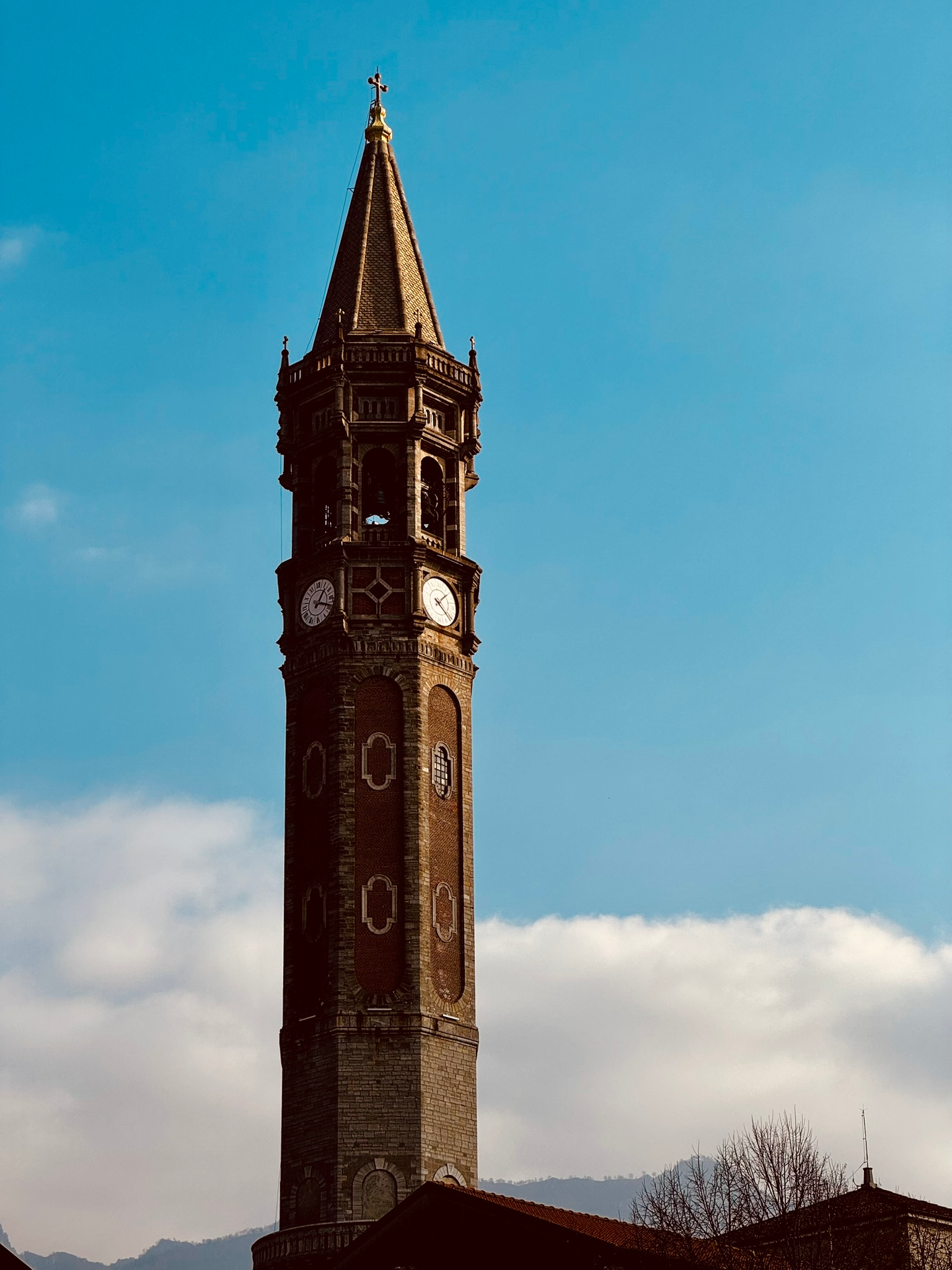 Bell tower of St. Nicholas’ Basilica in Lecco, Italy.